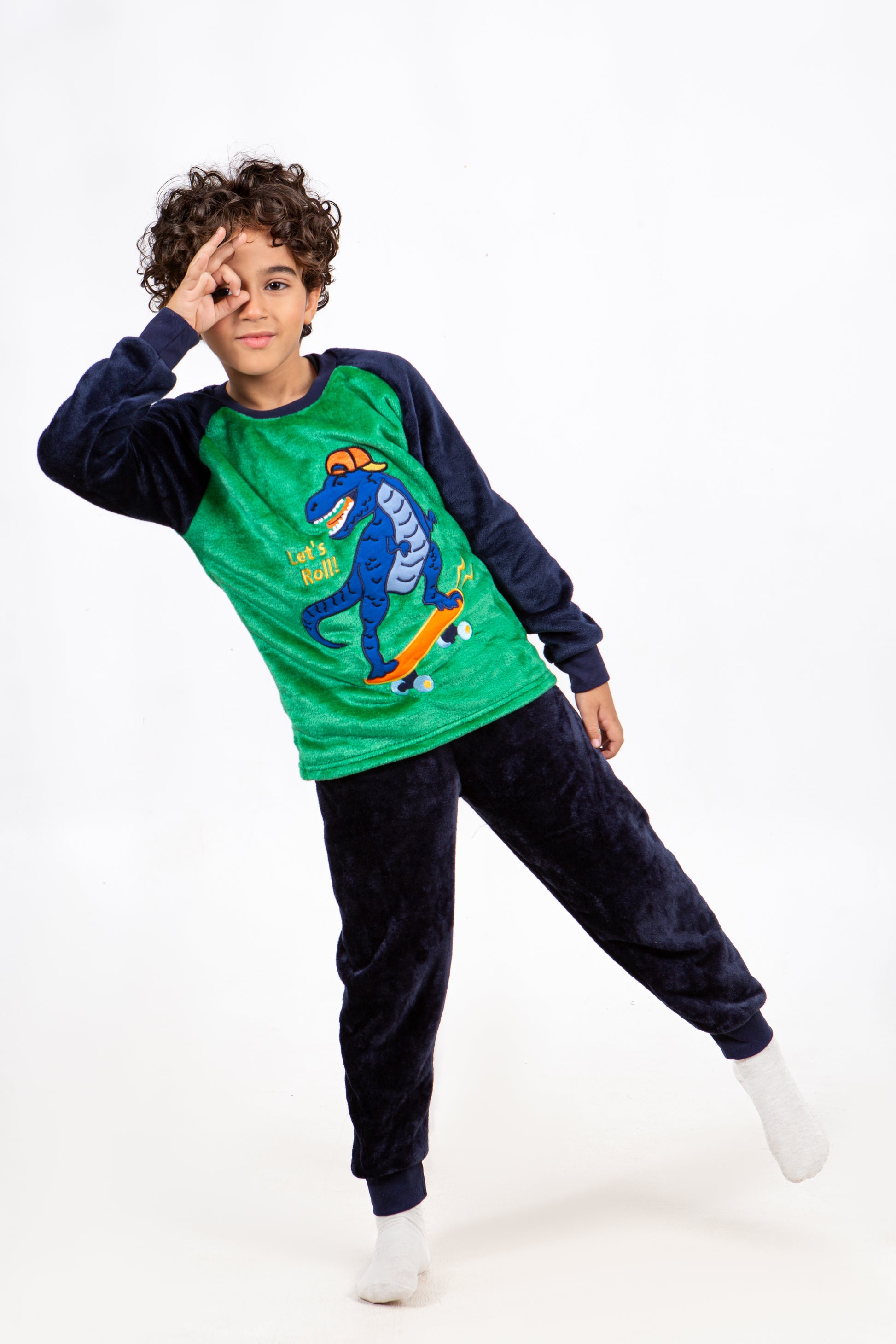 Boys' Polar Pajama – Dinosaur Skateboard – Green/Navy – 10828