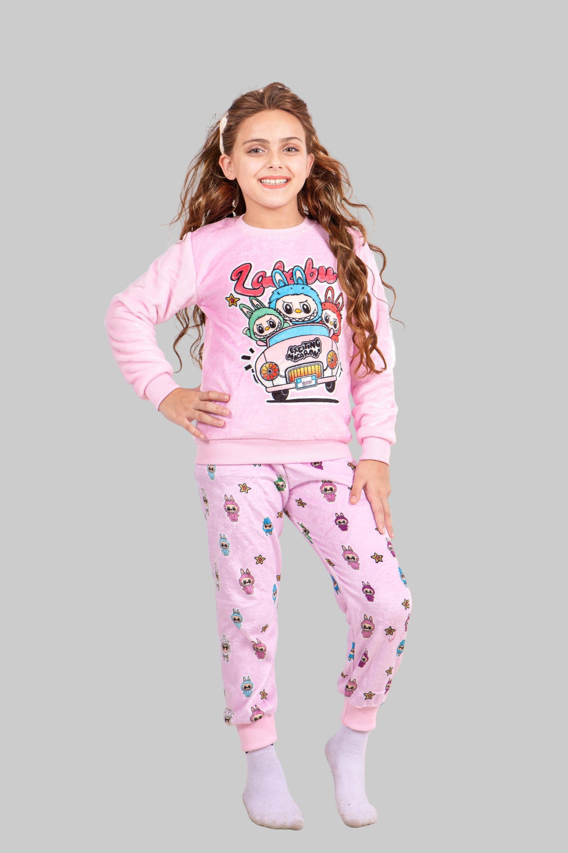 Girls' - Printed Polar - Pink Cartoon - 10834
