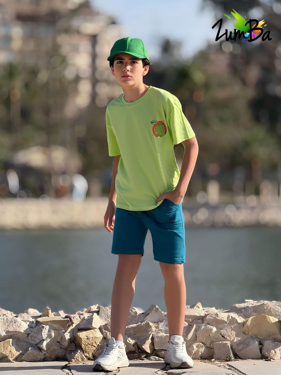 تصميم تتميز برسمة تمساح لطيف بكلمة "Hello"، مطبوعة بجودة عالية للمقاومة للتقشير أو لون رائع. ألوان مشرقة وتعطي طقم إطلالة شبابية واسعة.